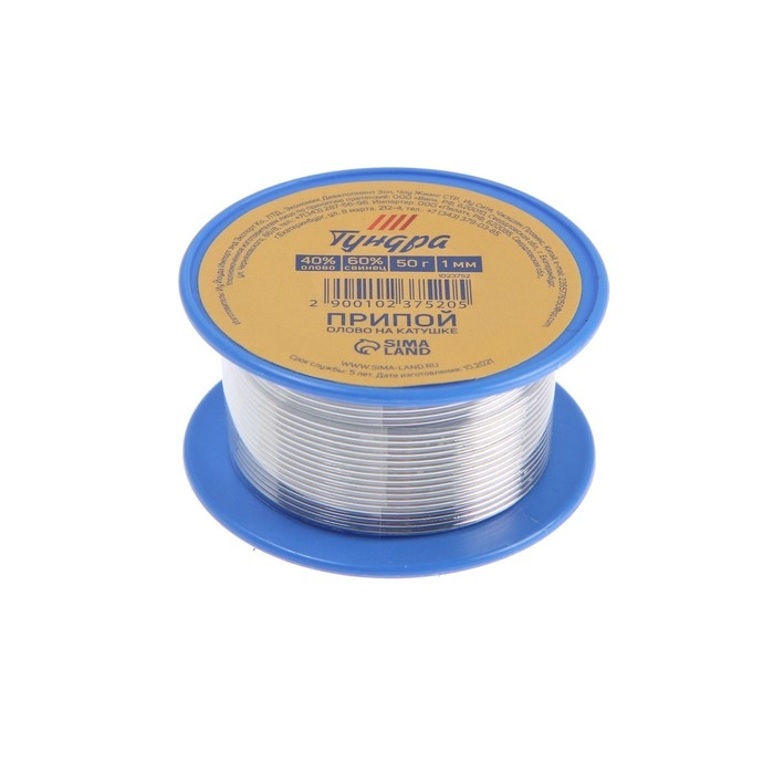 Припой ТУНДРА, ПОС 40, на катушке, 1 мм, 50 г