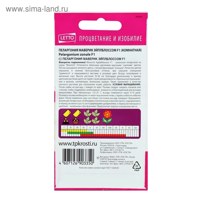 Семена комнатных цветов Пеларгония "Эйплблоссом", 4 шт.