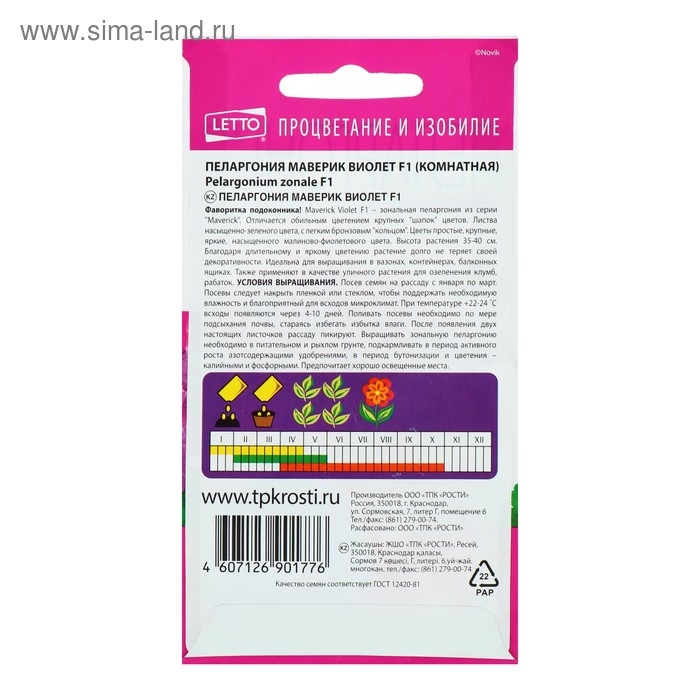 Семена комнатных цветов Пеларгония "Виолет", 4 шт.