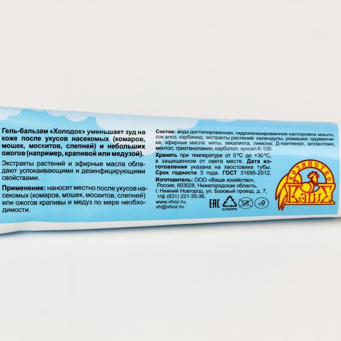 Гель-бальзам "Холодок" - это эффективное средство для успокоения кожи после укусов комаров, мошек, москитов и слепней. Его формула разработана специально для облегчения дискомфорта, связанного с укусами насекомых.