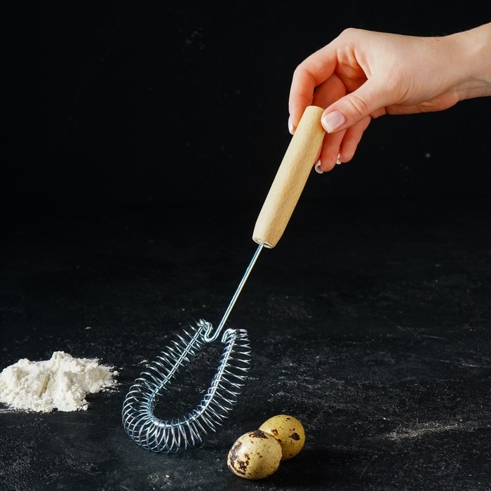 Венчик для взбивания с деревянной ручкой «Пружина», 28 х 7,5 х 2 см