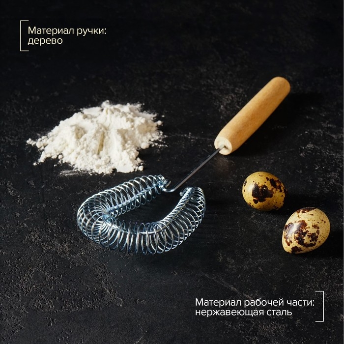 Венчик прочный и надежный, что позволяет использовать его для смешивания различных ингредиентов, таких как мука, сахар, яйца, масло и другие продукты.
