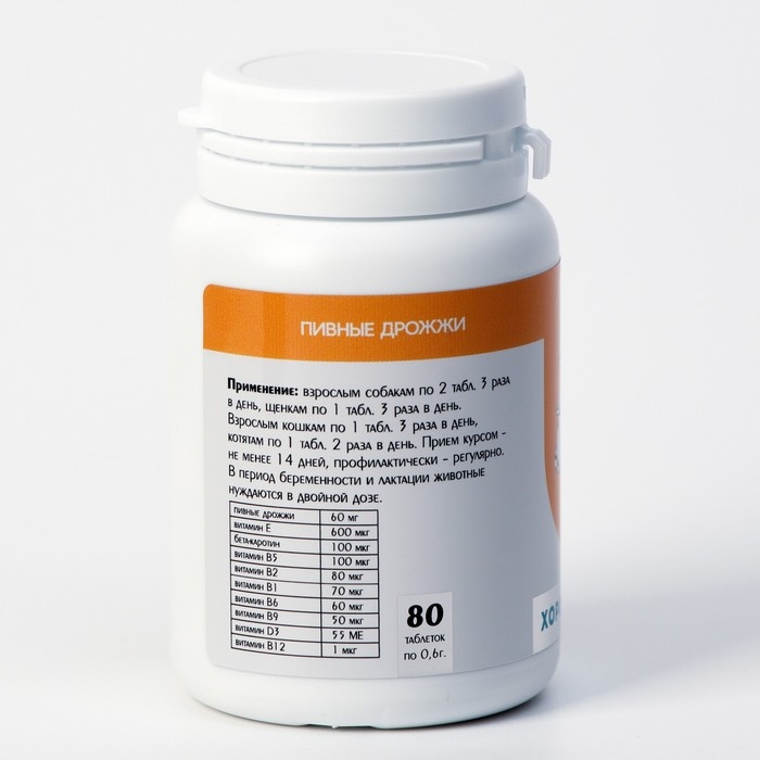 Пивные дрожжи "Хорошее зрение" для кошек и собак, с бета-каротином, 80 таб