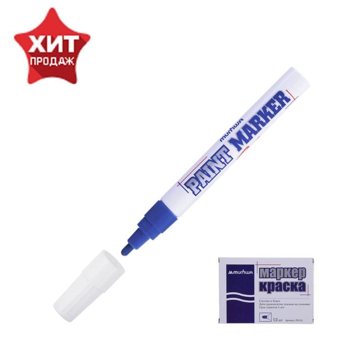 Маркер-краска (лаковый маркер) MunHwa - профессиональный лаковый маркер на нитрооснове. Маркер-краска MunHwa пишет на всех типах поверхностей: металл, дерево, резина, бетон, стекло, кожа. Цвет чернил - синий, диаметр пишущего узла - 4 мм.