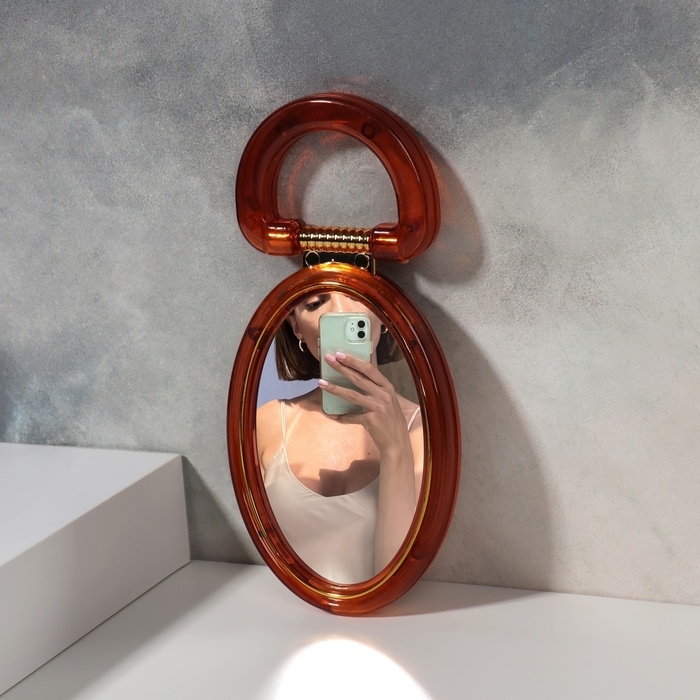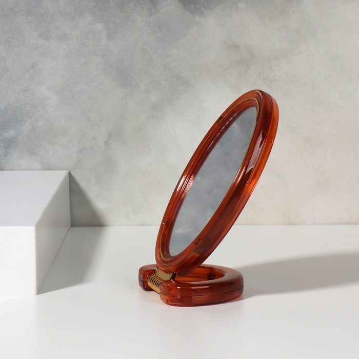 Зеркало настольное - подвесное «Овал», двустороннее, с увеличением, зеркальная поверхность 6 × 9,3 см, цвет «янтарный»