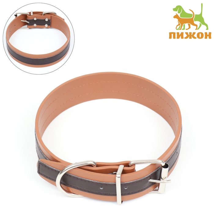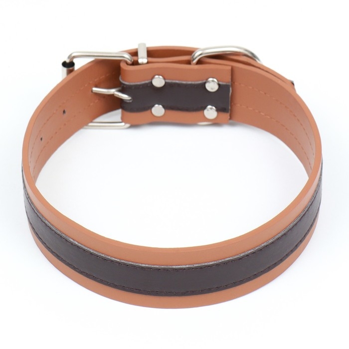 Ошейник двухслойный 66 х 3,5 см,ОШ 50-60, коричнево-рыжий