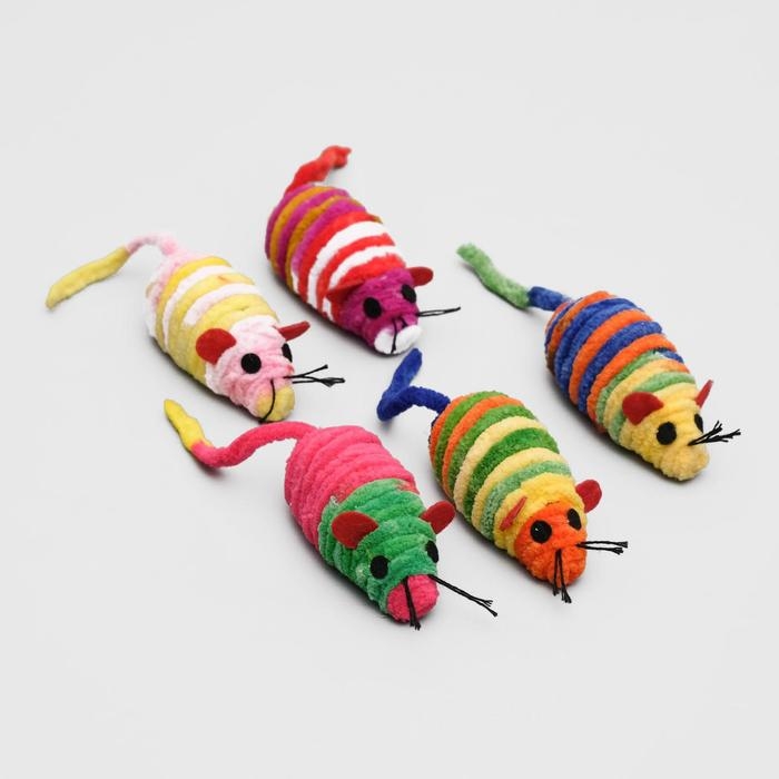 Мышь-погремушка махровая, 7 см, микс цветов