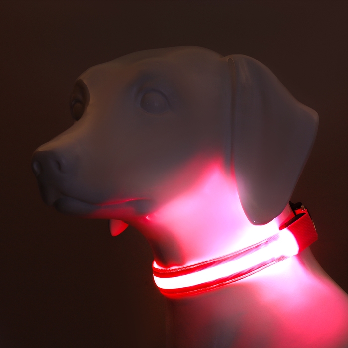 Ошейник с подсветкой размер XL, ОШ 52-60 х 2,5 см, 3 режима свечения красный