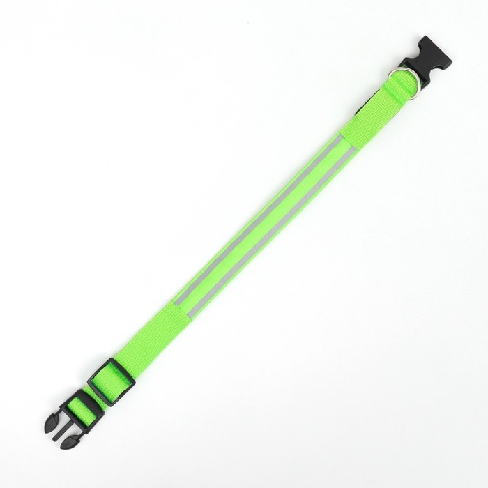 Ошейник с подсветкой Двойная полоса размер М, ОШ 40-48 х 2,5 см, 3 режима свечения зелёный