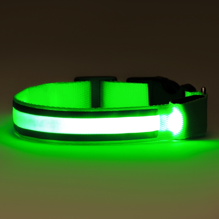 Ошейник с подсветкой "Двойная полоса", 3 режима свечения, зеленый