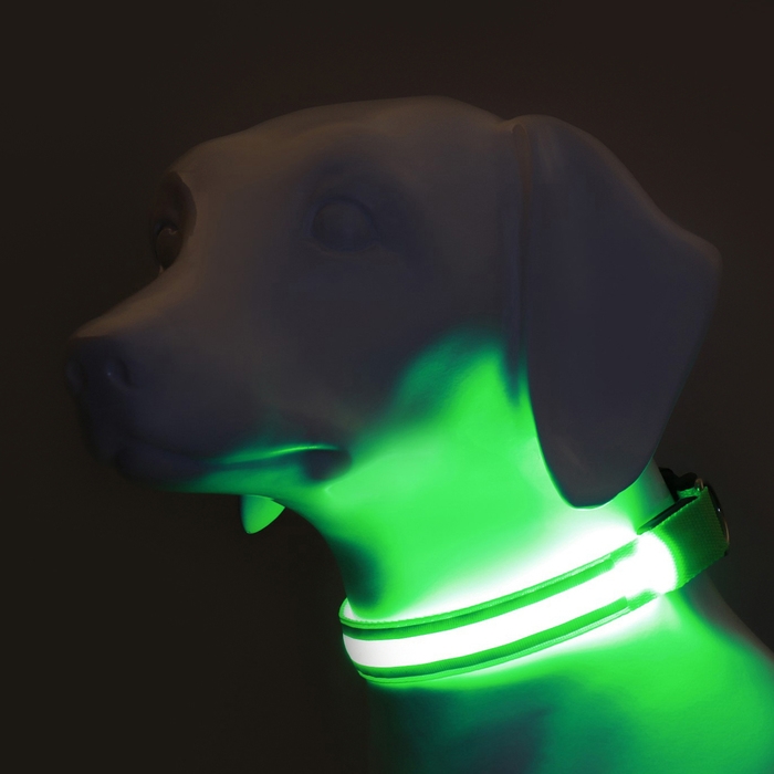 Ошейник с подсветкой "Двойная полоса", 3 режима свечения, зелёный