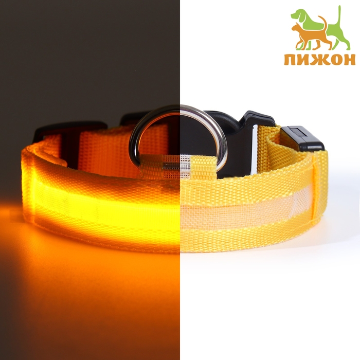 Ошейник с подсветкой размер S, ОШ 35-43 х 2,5 см, 3 режима свечения жёлтый