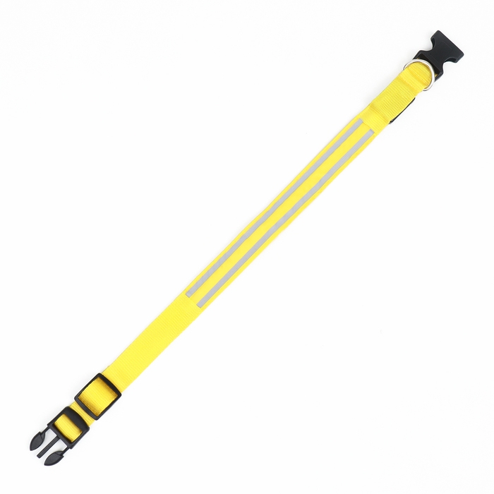 Ошейник с подсветкой Двойная полоса размер L, ОШ 45-52 х 2,5 см 3 режима свечения жёлтый