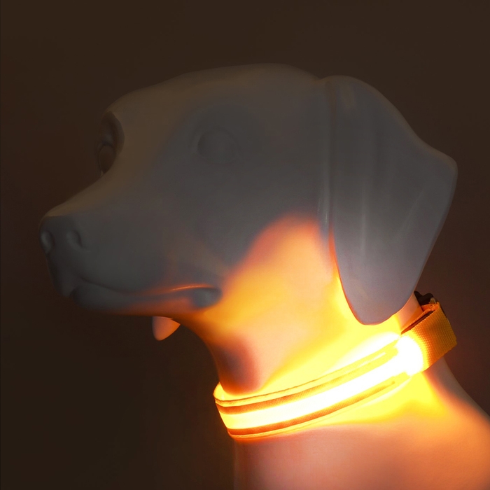 Ошейник с подсветкой "Двойная полоса", 3 режима свечения, жёлтый