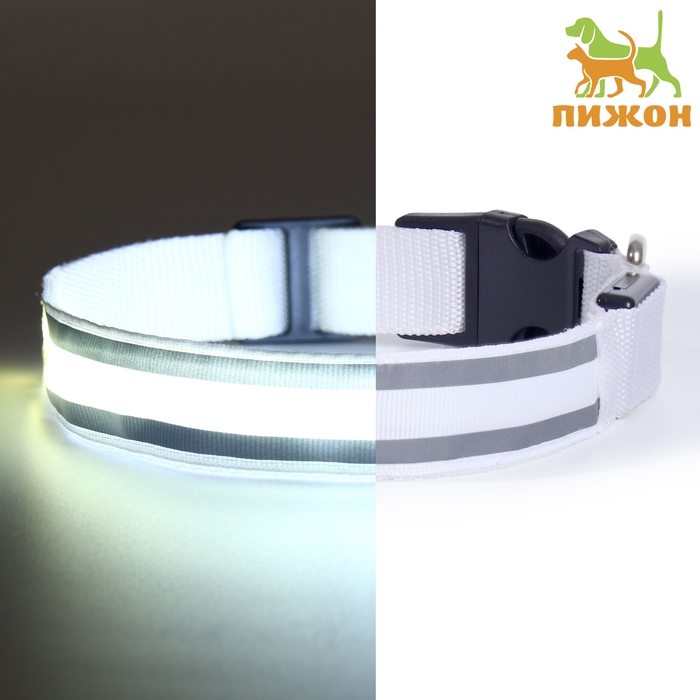 Ошейник с подсветкой "Двойная полоса", 3 режима свечения, белый