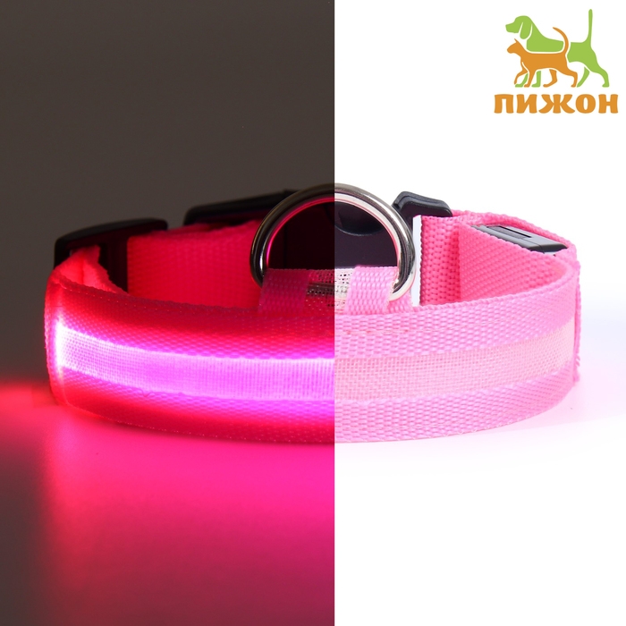 Ошейник с подсветкой, 3 режима свечения, розовый