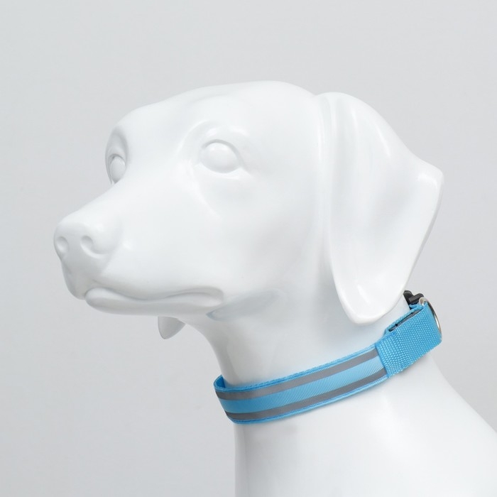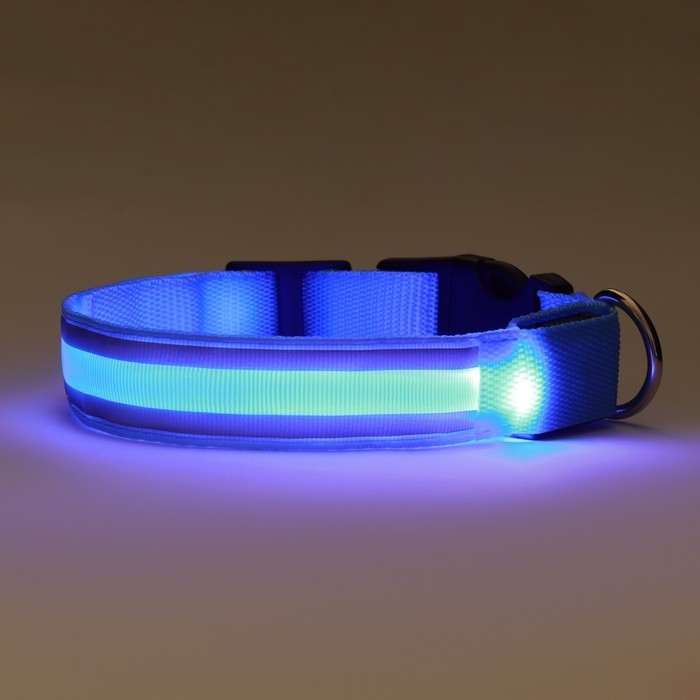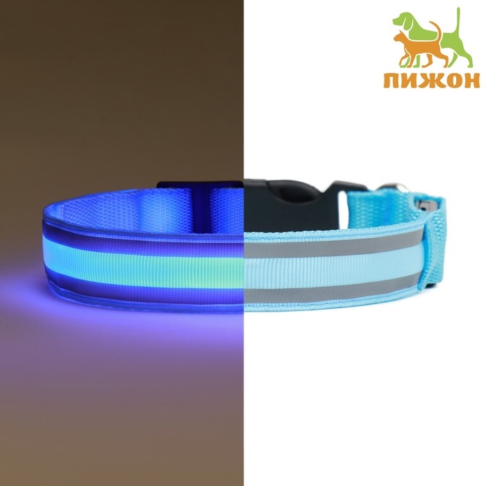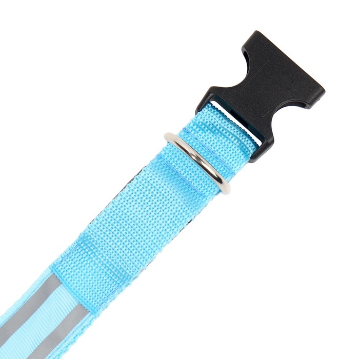 Ошейник с подсветкой Двойная полоса размер XL, ОШ 52-60 х 2,5 см, 3 режима свечения голубой