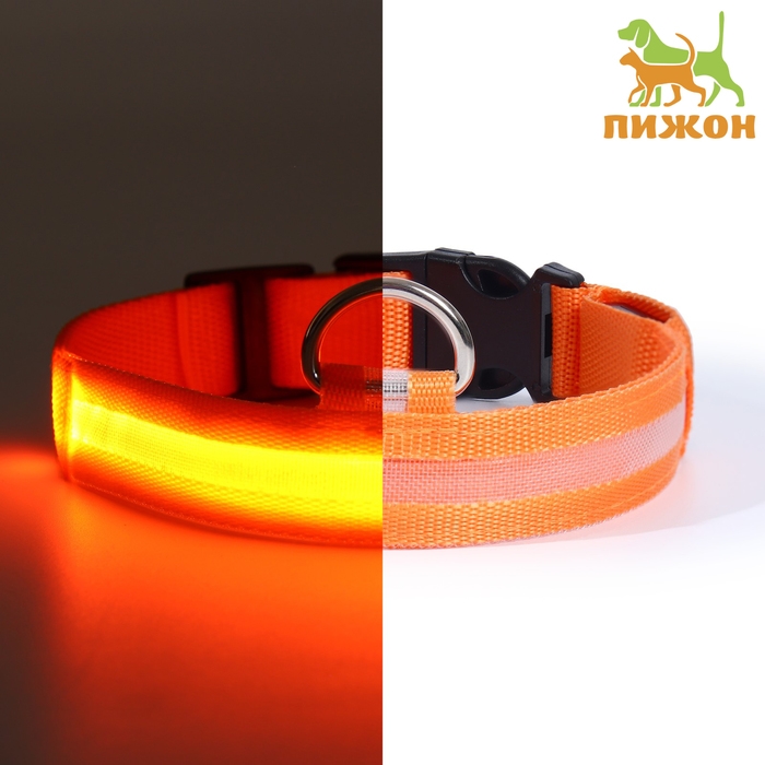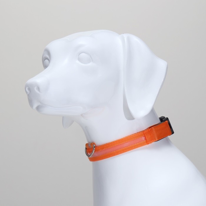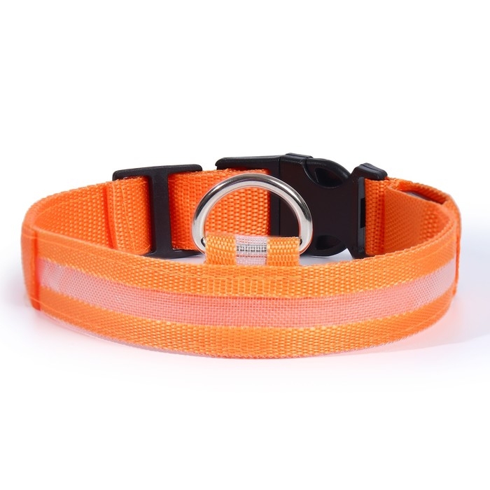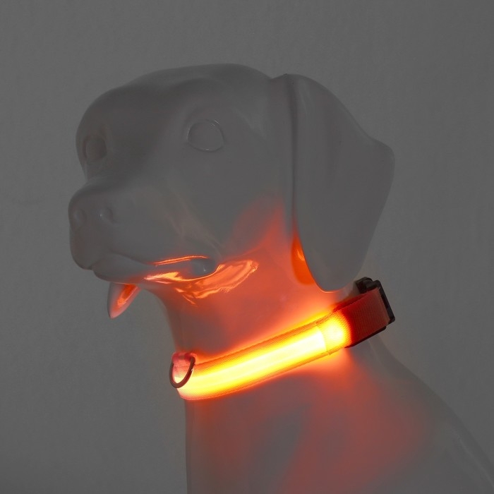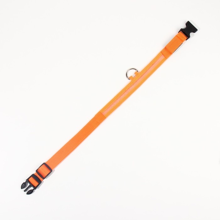 Ошейник с подсветкой размер XL, ОШ 52-60 х 2,5 см, 3 режима свечения оранжевый