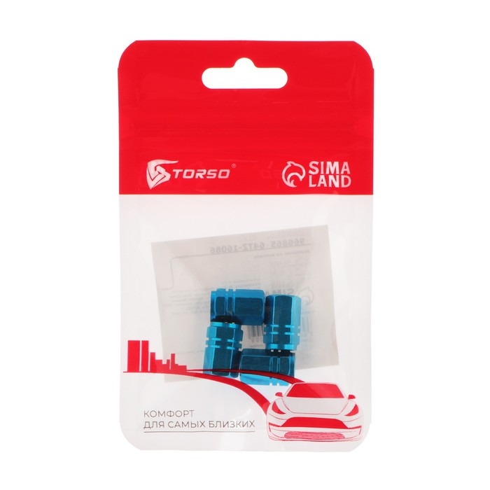 Колпачок на вентиль TORSO, сине-голубой, набор 4 шт