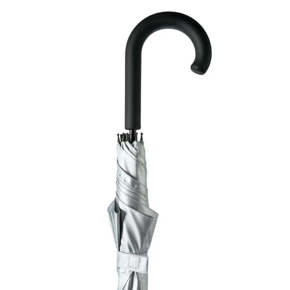 Зонт снабжен системой защиты от ветра. Если при экстремальных порывах ветра купол выгибается, то механизм пружинит, не давая спицам погнуться или сломаться.