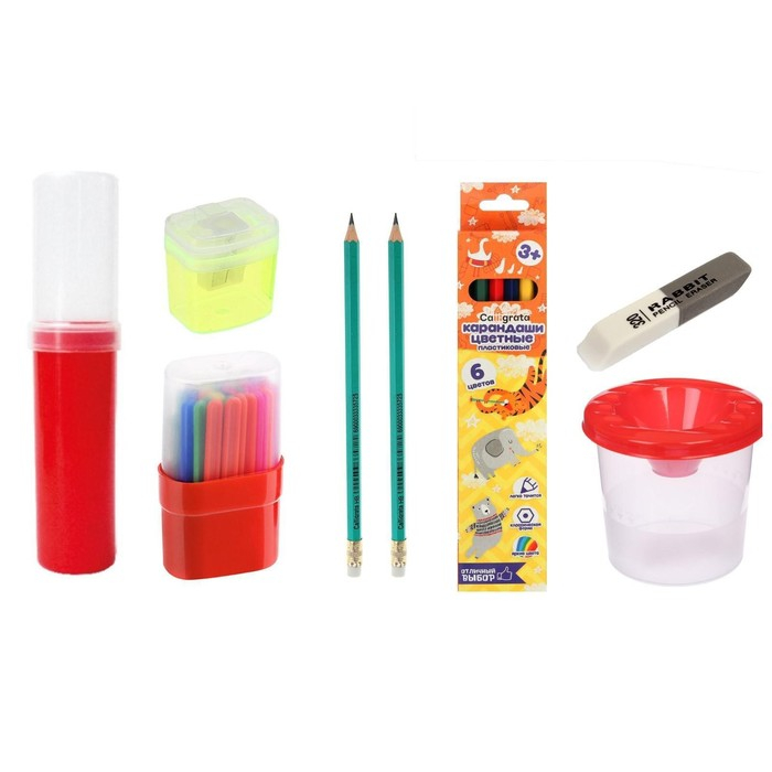 Альбом, Карандаши, Клей, Ластик, Ручка, Тетрадь, Точилка