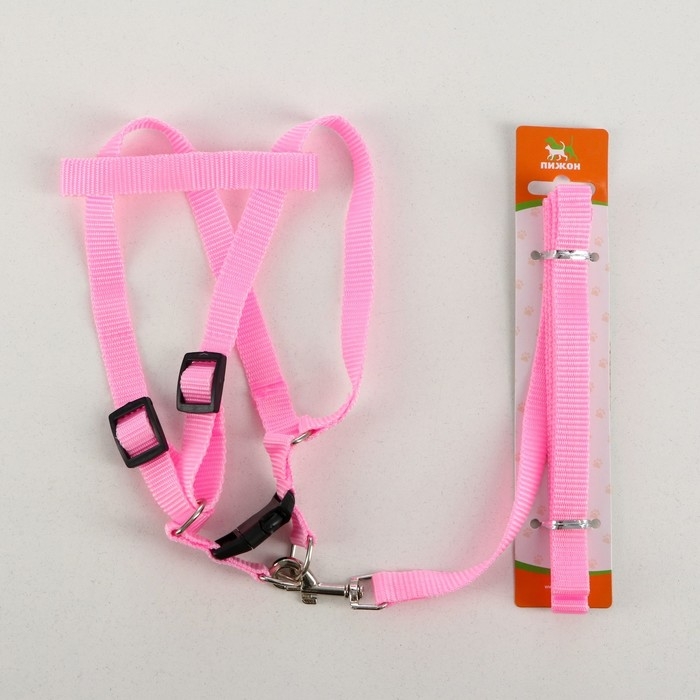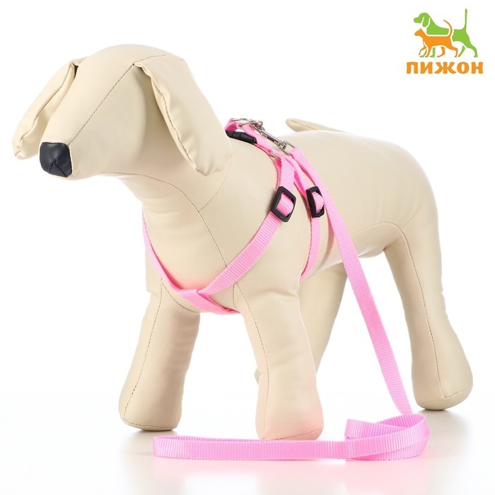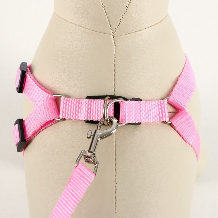 Комплект "Базис", поводок 120 х 1,5 см, шлейка 32-46 х 1,5 см, розовый
