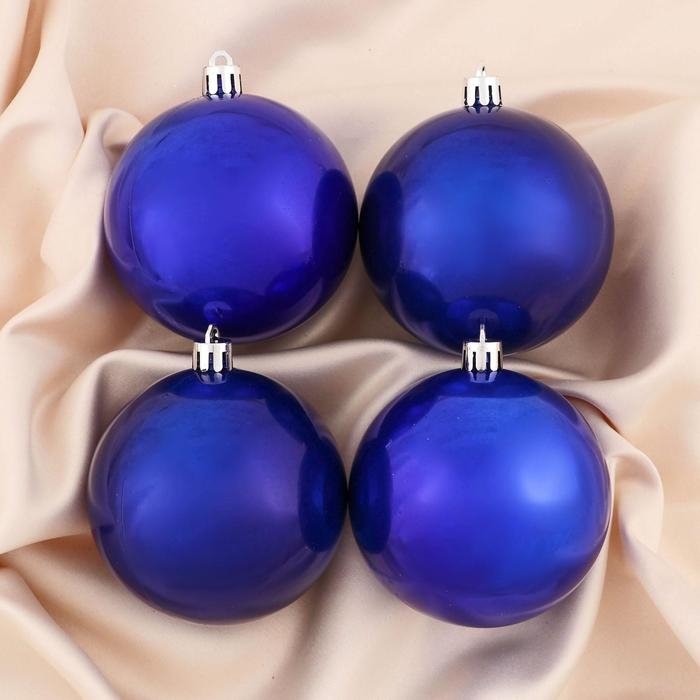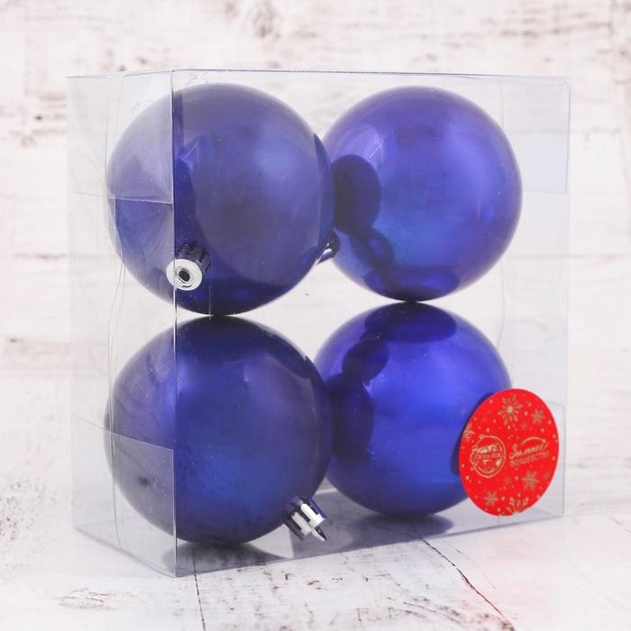 Набор шаров пластик d-8 см, 4 шт "Глянец" синий