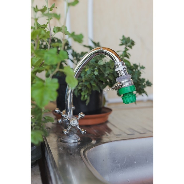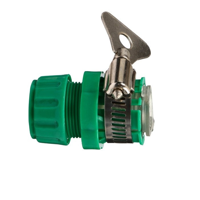 Коннектор, 3/4" (19 мм), с креплением на кран 3/4" (19 мм), с хомутом, пластик, резина, Greengo
