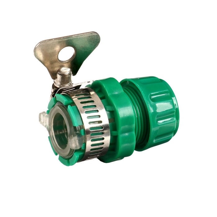 Коннектор с хомутом, крепление на кран 1/2" (12 мм), цанговое соединение 1/2" (12 мм), пластик, резина, Greengo