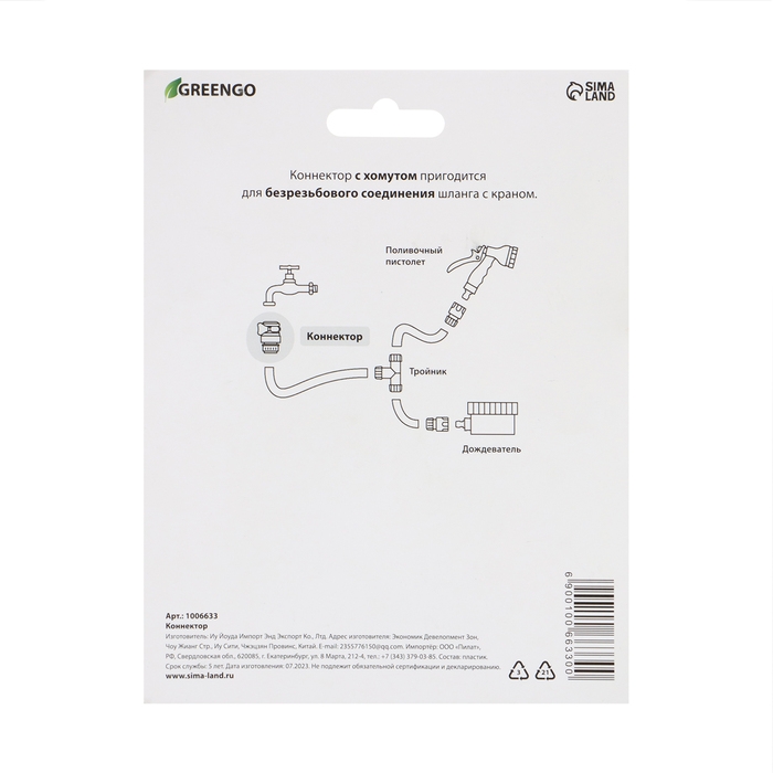 Коннектор предназначен для соединения шланга с пистолетами-разбрызгивателями, кранами, для соединения труб и шлангов между собой. Также может служить в качестве переходника с одного диаметра изделия на другой.