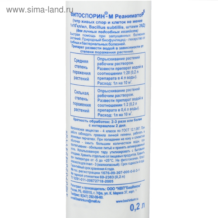 Биопрепарат от бактериальных и грибных болезней Фитоспорин-М Реаниматор, 0,2 л