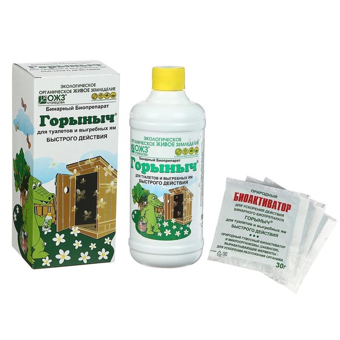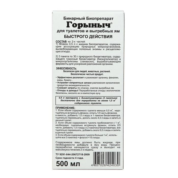 Биопрепарат Горыныч-бинарный для туалетов и выгребных ям (0,5л. + 3 пакетика по 30г.)