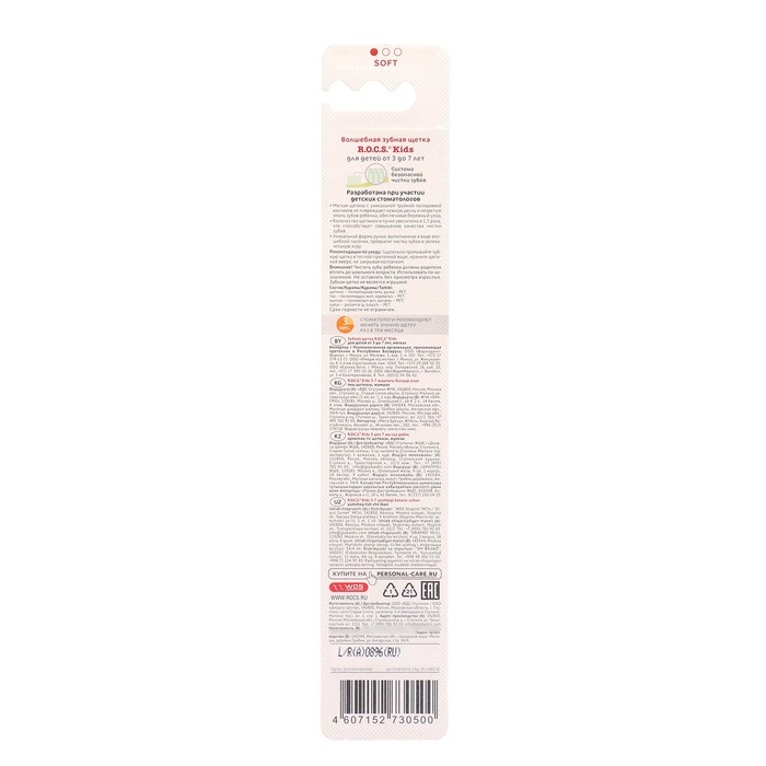 Зубная щетка R.O.C.S. Kids для детей, от 3 до 7 лет микс - зубная щетка для детей от 3 до 7 лет. Разработана при участии стоматологов. Экстрамягкая щетина с уникальной тройной полировкой кончиков обеспечивает бережный уход за нежными деснами и эмалью зубов малыша.