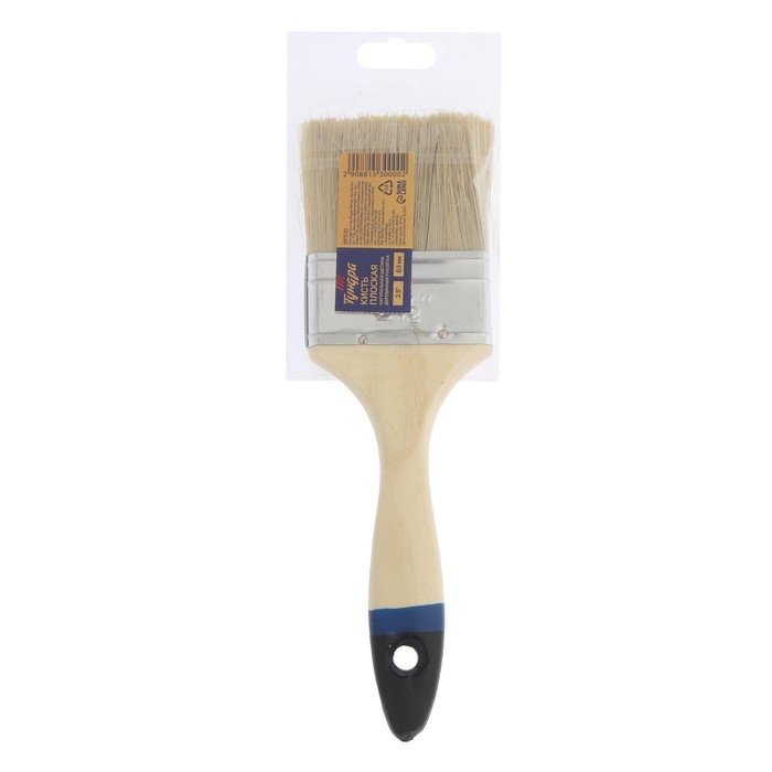 Кисть плоская ТУНДРА, натуральная щетина, пластиковая рукоятка, 3", 75 мм