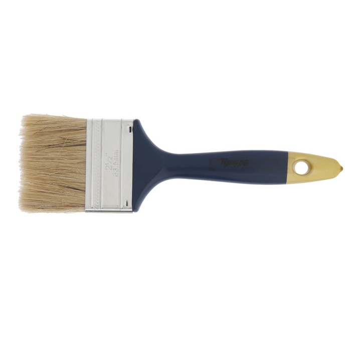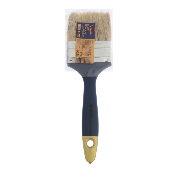 Кисть плоская ТУНДРА, натуральная щетина, пластиковая рукоятка, 2.5", 63 мм