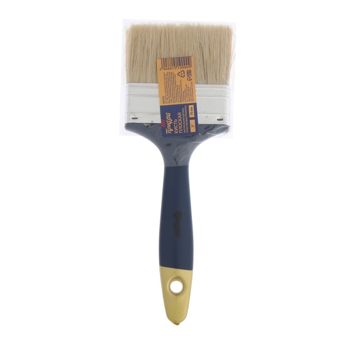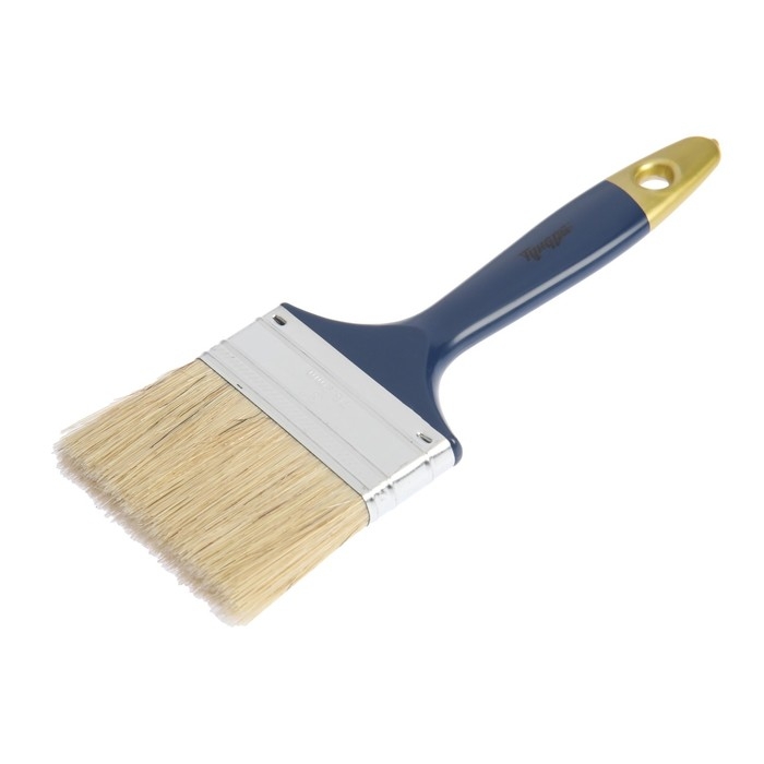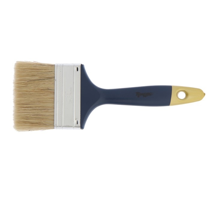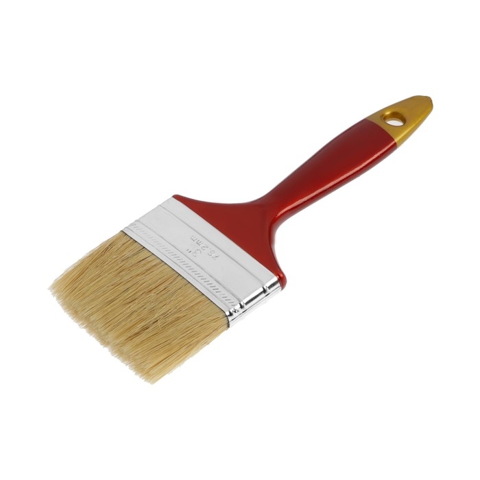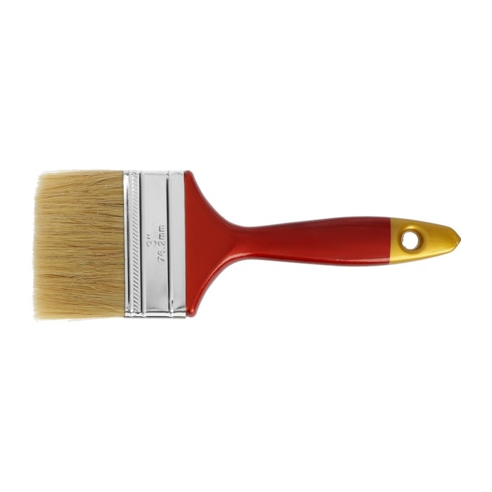 Кисть плоская ТУНДРА, натуральная щетина, пластиковая рукоятка, 3", 75 мм