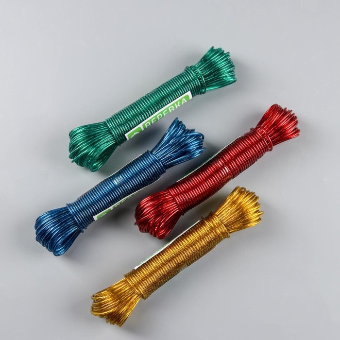 Верёвка бельевая Доляна, металлическая нить, d=2 мм, длина 20 м, цвет МИКС