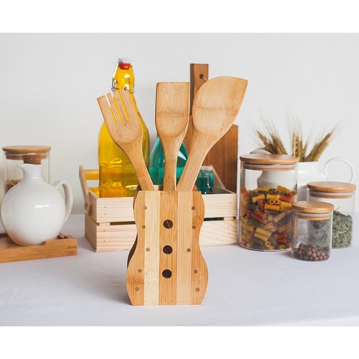 Набор кухонных принадлежностей «Бамбук», 4 предмета, на подставке