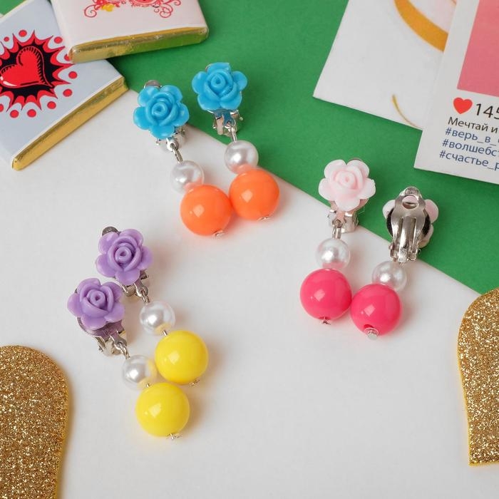 Клипсы детские «Выбражулька» розочки с бусинками, цвет МИКС