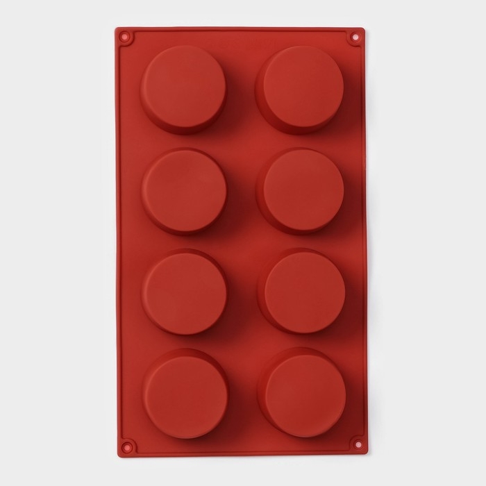 Форма силиконовая для выпечки Доляна «Фигуры.Круг», 29×17×2,7 см, 8 ячеек (5,8×2,7 см), цвет коричневый