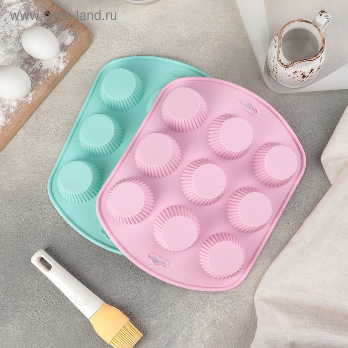 Форма для выпечки Доляна «Сладости. Круг реб», силикон, 27×22×3 см, 9 ячеек (6×6×3 см), цвет МИКС