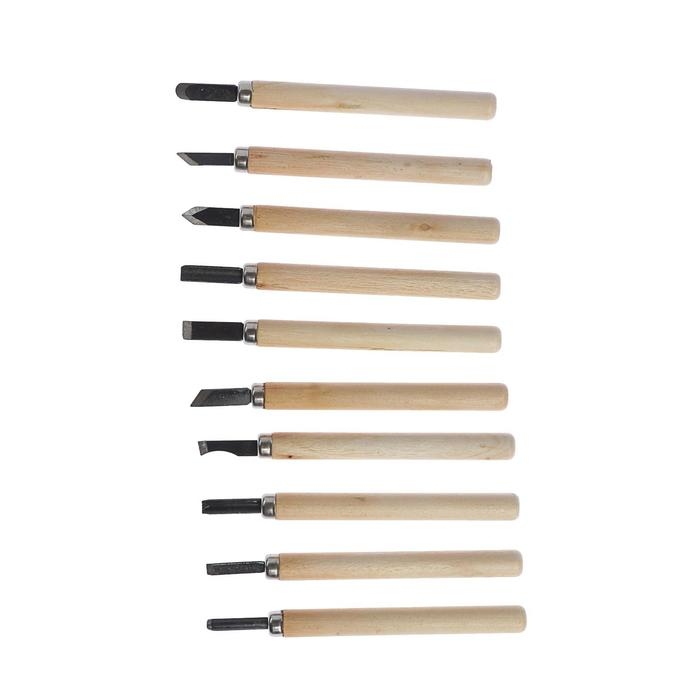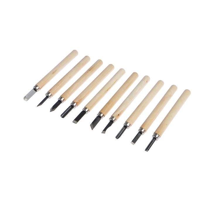 Набор резцов по дереву ТУНДРА, деревянная рукоятка, 10 шт.