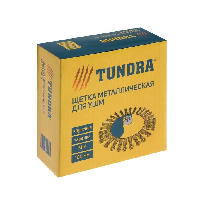 Щетка металлическая для УШМ ТУНДРА, крученая проволока, «тарелка», М14, 100 мм