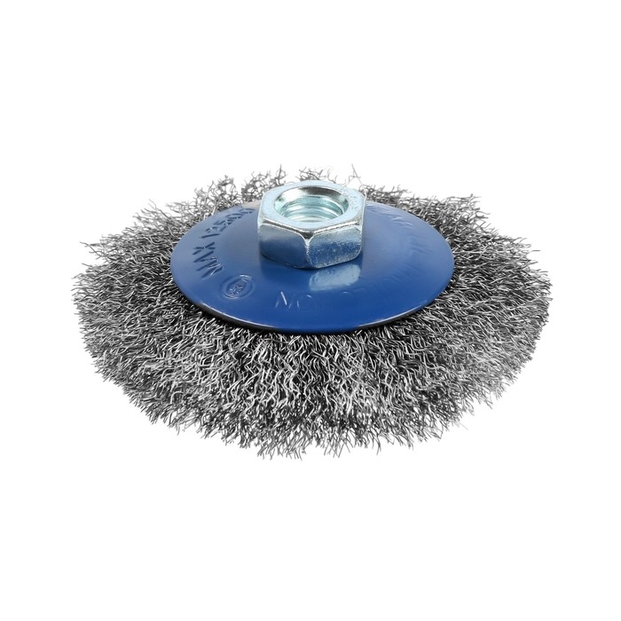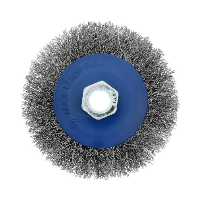 Металлическая щётка типа «тарелка» ТУНДРА предназначена для зачистки, шлифования, полирования, матирования изделий из различных материалов, удаления ржавчины и грязи с металлических поверхностей в щадящем режиме. Применяется совместно с угловой шлифовальной машиной, тип крепления - М14.