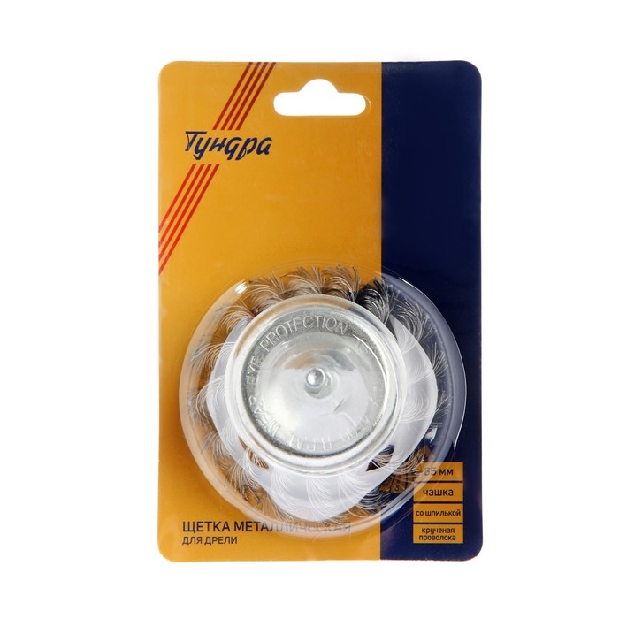 Щетка металлическая для дрели ТУНДРА, со шпилькой, крученая проволока, "чашка", 65 мм