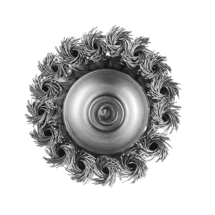 Щетка металлическая для дрели ТУНДРА, со шпилькой, крученая проволока, "чашка", 25 мм