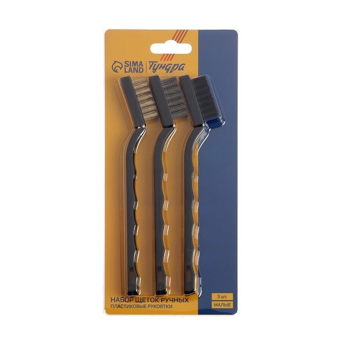 Набор щеток металлических ручных ТУНДРА, пластиковые рукоятки, малые, 3 шт.