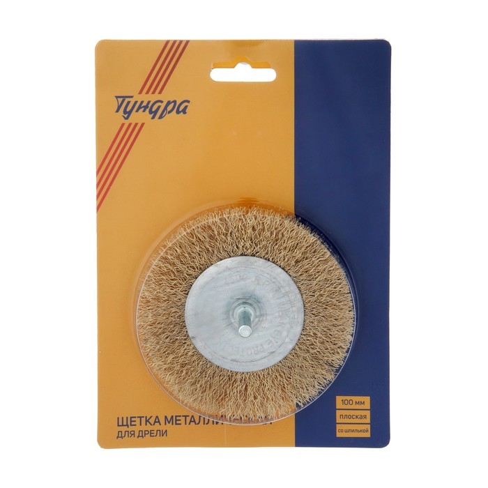 Щетка металлическая для дрели ТУНДРА, со шпилькой, плоская, 100 мм