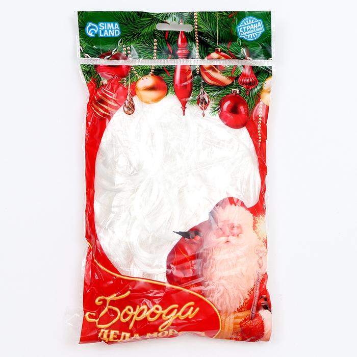 - Борода выполнена из высококачественных материалов. Она густая, имеет длину 47 см и естественный белый цвет, что придает образу максимальную реалистичность
