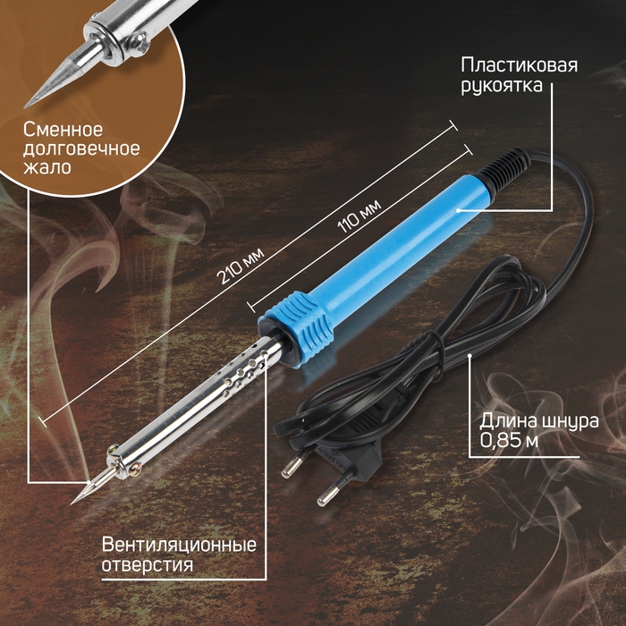 Инструмент применяется для следующих видов работ: пайка, лужение, монтаж металлических деталей и работ по дереву.